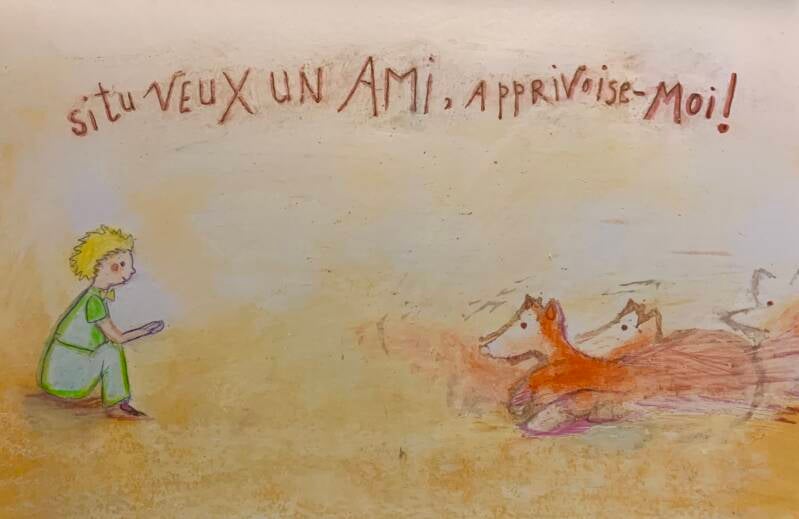 Meedoen met een #challenge op Instagram. Niet eerder gedaan, maar deze keer ging het over mijn favoriete boek Le petit prince! Ik stuurde deze tekening in. Het is een scène uit het boek waarin de vos de kleine prins voorstelt om hem te temmen zodat ze vrienden kunnen worden.