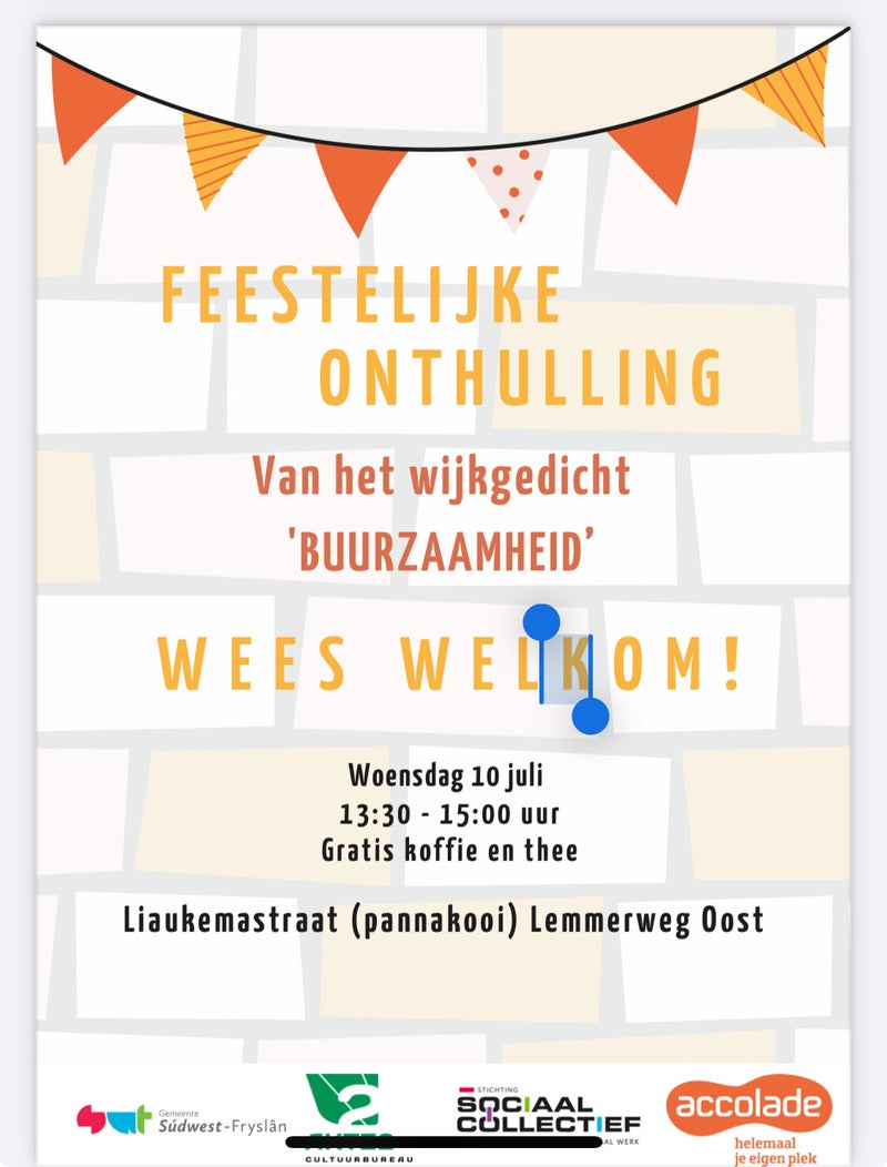 Op 10 juli wordt het gedicht Buurzaamheid onthuld dat ik maakte met woorden van bewoners van de wijk LEO in Sneek. Het gedicht komt huizenhoog op een flatgebouw in de wijk, als stille reminder aan wat jou ook alweer een goede buur maakt!